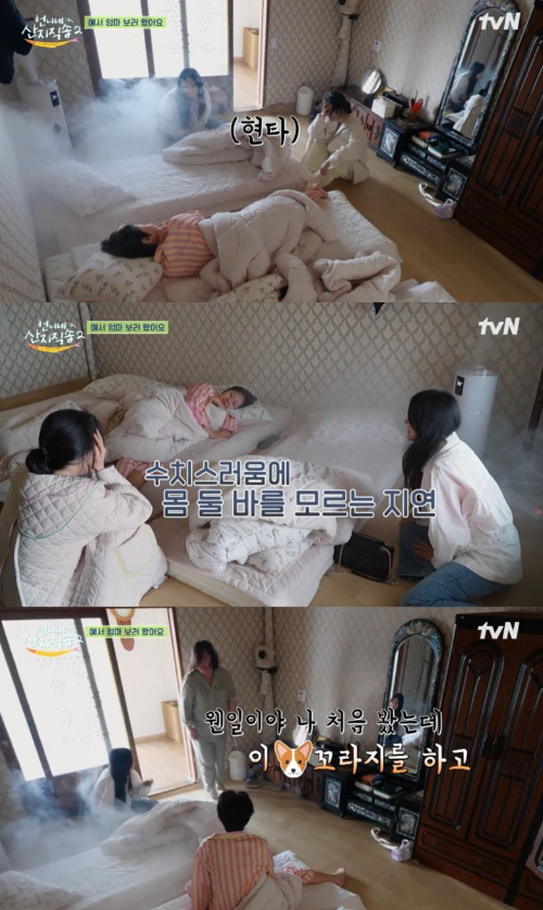 먼저 반응한 사람은 ,맏언니, 염정아였습니다. ,예서야?,라는 한마디에 바로 이불을 걷어차고 벌떡! 맨발로 뛰어나와 딸을 껴안는 모습은 SKY 캐슬 명장면을 그대로 소환했죠. 반면 임지연은 충격+민망 콤보로 쿠션을 뒤집어쓰고 ,첫 만남 몰골 최악,이라며 이불 속에 파묻혔습니다. 평소 예능에서 ,프로 텐션러,로 불리던 그녀도, 급기야 ,개꼬라지다… 수치스럽다,는 직설 토크로 스태프를 터트렸어요. 박준면은 ,나도 이 꼴로 인사하겠네,라며 덩달아 이불을 목 끝까지 끌어올렸고, 카메라는 모델 이재욱의 부스스한 침대 머리까지 잡아주며 ,새벽난민, 콘셉트를 완성했습니다.