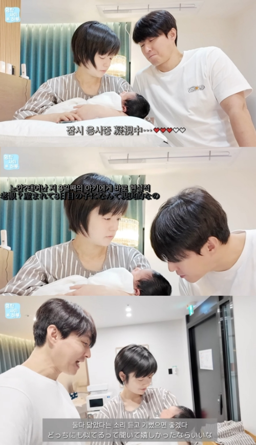 이어진 영상에서는 갓 태어난 지 3일 된 아들 하루의 모습이 공개되었습니다. 엄마 사야 씨는 "그냥 귀엽다. 신생아는 특히 사랑스럽다"며, 갓 태어난 생명의 경이로움에 푹 빠진 모습을 보여주었습니다. 그녀는 하루를 품에 안고 한시도 눈을 떼지 못했고, 그 옆에 나란히 앉은 아빠 심형탁 씨 역시 아무 말 없이, 그저 꿀이 뚝뚝 떨어지는 눈빛으로 아들을 바라볼 뿐이었습니다.